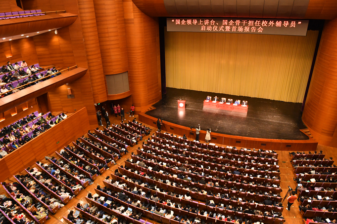 教育部、國資委有關(guān)司局,50家中央企業(yè),50所高校負(fù)責(zé)同志;20名校外輔導(dǎo)員代表,1000余名在京高校學(xué)生參加報告會。